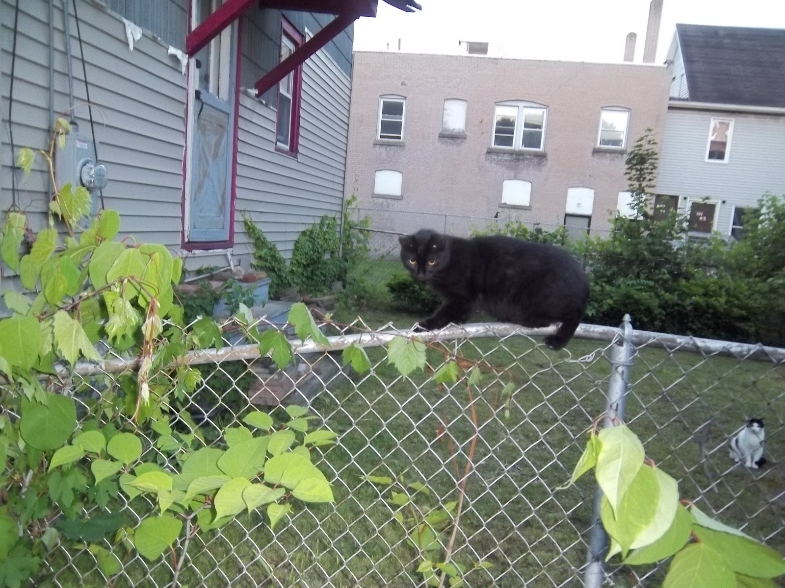Stout - I continue to feed two beautiful reds and a black kitty, all are fixed. The house next door to this dilapidated garage that I feed them in is going to be demolished any day now. The black kitty has gotten very attached to me, and runs to me and follows me all the way back to his feeding spot, although I am leary of him, he is a scratcher!
